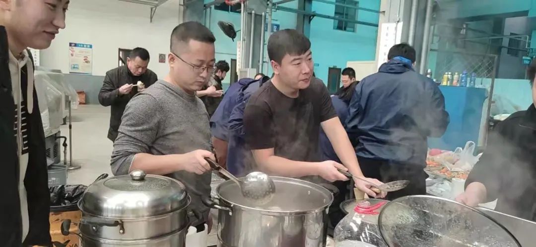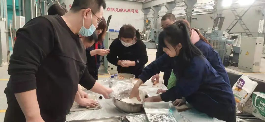 和面、拌餡、包餃子、煮餃子把活動推向了高潮,大家擼胳膊挽袖子,各顯神通,一個個象征著團圓的餃子鋪滿了桌面,在幸福歡快的背景樂下,整個場面再次熱氣騰騰。